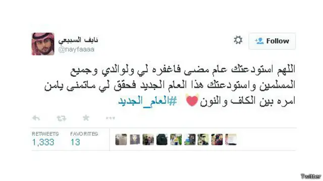 فكتبت المستخدمة "تراتيل":#العام_الجديد اعتدتُ النجاح ومازلت أسعى لتحقيق ما تبقى من طموحاتي لن أتوقف ولن تكبلني قصص الخذلان التي سَ أمحوها مع نهاية العام .. عامكم فرح." وأضاف المستخدم "نايف" متمنيا أن يحقق له العام جديد أمانيه "اللهم استودعتك عام مضى فاغفره لي ولوالدي .... فحقق لي ماتمنى ... #العام_الجديد"