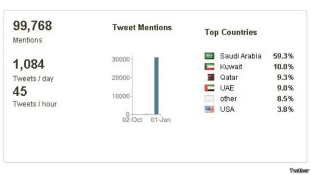كما حظي هاشتاغ "#دخلنا_2015_وما_زال_الشعب_السعودي"بانتشار واسع في السعودية،إذ وصلت عدد التغريدات إلى مايقارب 50 ألف تغريدة منذ تدشينه في 31 ديسمبر/كانون الأول من السنة المنصرمة.
