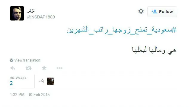 وانتقد المغردون الموضوع عبر هاشتاغ #سعودية_تمنح_زوجها_راتب_الشهرين – الذي ظهر في أكثر من 100 ألف تغريدة - معتبرين أن تنازلها عن الراتب يعكس تسلط الرجل على المرأة السعودية ومحاولاتها الدائمة الحفاظ على زوجها خشية الزواج بأخريات، بينما اعتبر البعض أن هذا التنازل يعد أمراً عادياً بين الزوجين.