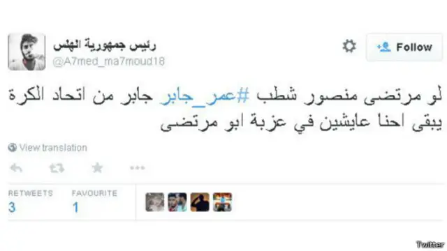 جاءت التغريدات في مجملها تمدح موقف جابر ومنتقدة في الوقت ذاته رئيس نادي الزمالك مرتضى منصور لمطالبته بشطب جابر من سجلات اتحاد الكرة. قال المغرد أحمد محمود: "لو مرتضى منصور شطب #عمر_جابر جابر من اتحاد الكرة يبقى احنا عايشين في عزبة ابو مرتضى"