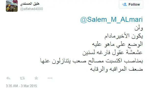 كما حذر بعض المغردين من أن هذه الواقعة لن تكون الأخيرة من نوعها وذلك بسبب غياب المراقبة من جانب مسؤولي وزارة الصحة، فكتب هليل المسندي في هذا السياق: "مادام الوضع على ما هو عليه عشعشة عقول فارغة لسنين بمناصب اكتسبت مصالح صعب يتنازلون عنها، ضعف المراقبة والرقابة".