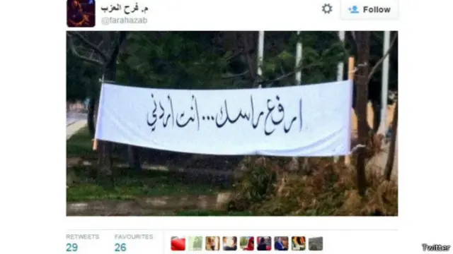 كما استخدم آخرون الهاشتاغات لنشر صوراً تظهر لافتات نشرت في شوارع العاصمة عمان تحمل شعار "ارفع راسك".