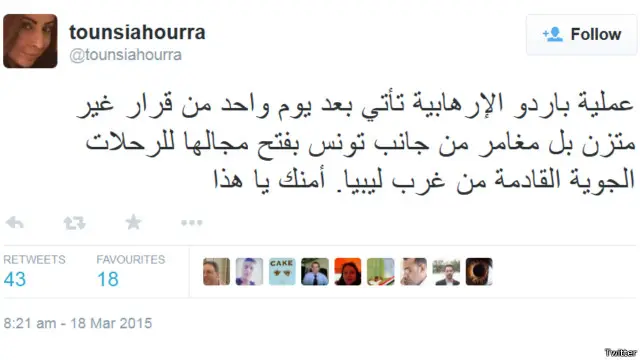 ورأت المستخدمة Tounsiahourra أن الحادث مرتبط بحالة الفوضى الحالية في ليبيا المجاورة.