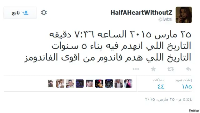 وأعرب المستخدم HalfAHeartWithoutZayn عن استياءه من قرار الرحيل: "٢٥ مارس ٢٠١٥ الساعة ٧:٣٦ دقيقة التاريخ اللي انهدم فيه بناء ٥ سنوات التاريخ اللي هدم فاندوم من أقوى الفاندومز."