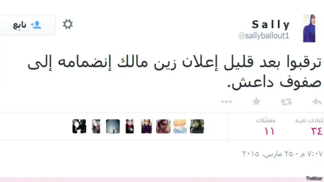 وأثار القرار كذلك موجة من التعليقات الساخرة على موقع تويتر، حيث علقت Sally في صفحتها على تويت: "ترقبوا بعد قليل إعلان زين مالك انضمامه إلى صفوف داعش."