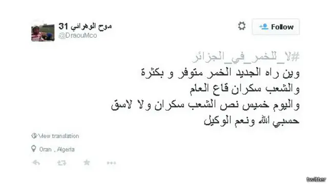 وحذر مغردون من مغبة هذا القرار خصوصا على الشباب، فعلقت المغردة لينا بالقول : " لا لبيع الخمر في الجزائر، عيب فنصف الشباب ضائع والسبب هم التجار و غياب الرقابة #لا_للخمر_في_الجزائر."