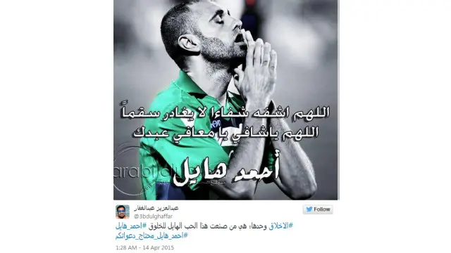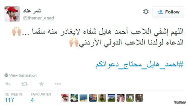 دشن مستخدمو تويتر في عدد من دول الخليج نذكر منها الكويت والبحرين هاشتاغ #احمد_هايل_محتاج_دعواتكم لدعم مهاجم كرة القدم الأردني أحمد هايل، لاعب نادي العربي الكويتي والمنتخب الوطني الأردني.