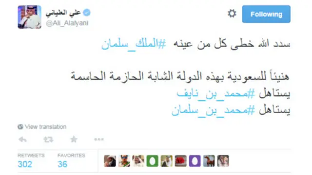من ناحية أخرى، رحب مغردون بقرار تعيين الأمير محمد بن نايف بن عبد العزيز وليا للعهد، وتعيين الأمير محمد بن سلمان وليا له.