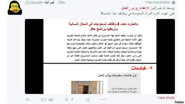 وانتقد المغرد "عبدالعزيز بن ذياب" سياسات الوزير المعفى في تغريدة له، فقال : " #إعفاء_وزير_العمل من منصبه كان مفرحا فقد تسبب في الغلاء .... وأقحم النساء في مجال ليس مجالهن ...."