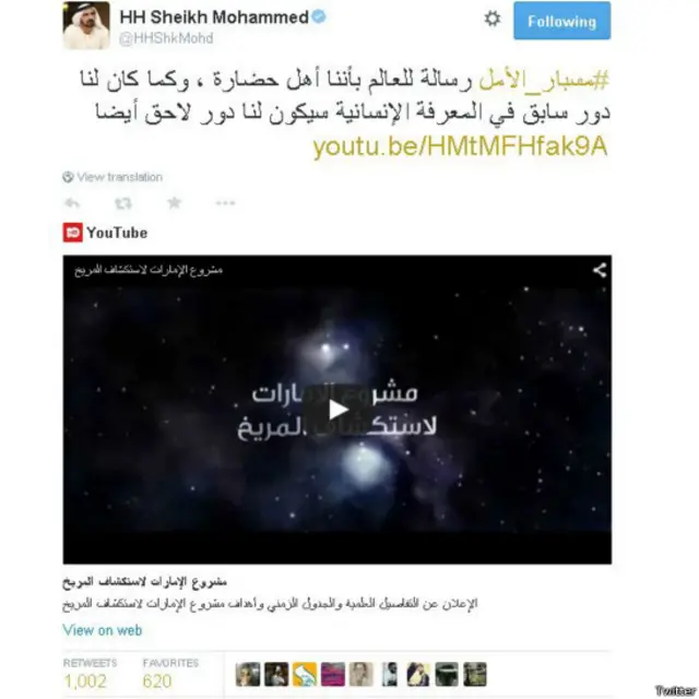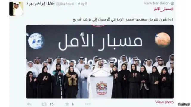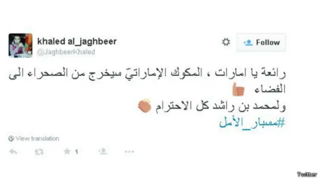 وأطلق حاكم دبي هاشتاغ بعنوان "#مسبار_الأمل" الذي انتشر بسرعة بين المغردين الاماراتيين.