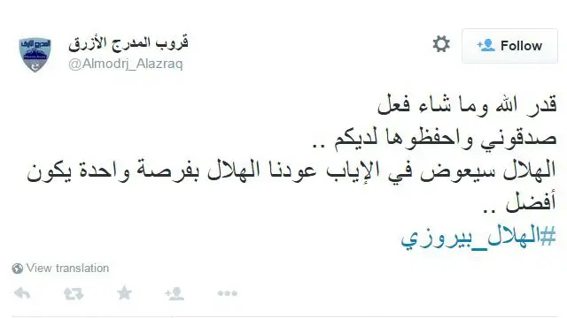 وعلق مغرد أطلق على نفسه اسم "ذا ادفايزور"قائلا : "لا تضحكون على انفسكم الهلال لن يعوض وسيغادر الآسيوية والشواهد كثيرة".