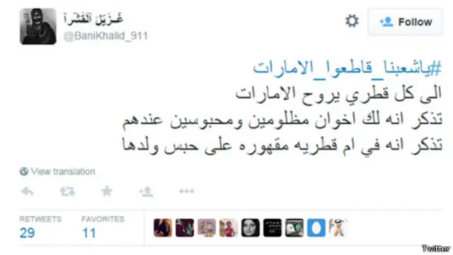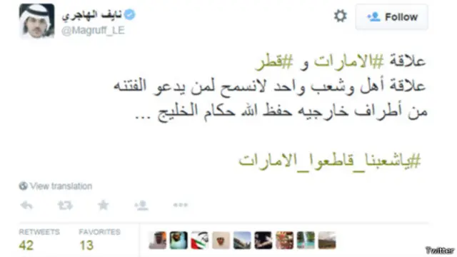 وعلق المغرد "ابن محمد" بالقول: "يا أبناء الخليج كونوا لبعضكم كالجسد الواحد إذا اشتكى منه عضو تداعى له سائر الجسد بالسهر والحمى، ونبذوا دعاة الفتنة".