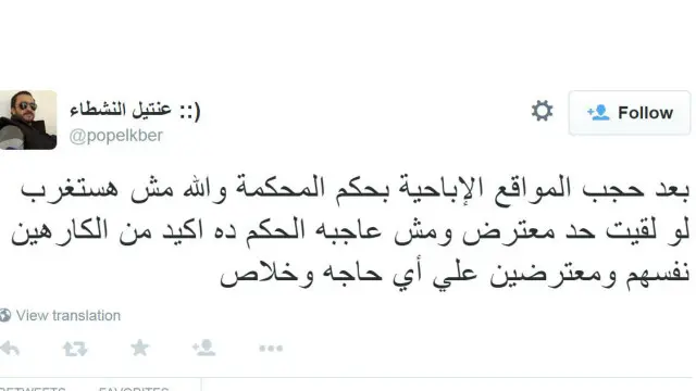 وذكرت مواقع إخبارية مصرية أن الحكومة تعهدت بتنفيذ الحكم فور استلامه، وجاء في الدعوى التي أقامها أحد المحامين، أن "امتناع جهة الإدارة، وهي الدولة عن إصدار تشريعات وقوانين تجرم وتمنع هذه المواقع، يمثل قرارا سلبيا تختص بنظره محاكم القضاء الإداري".