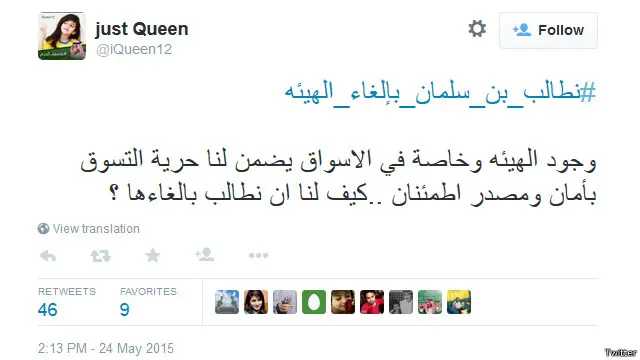 وأضافت مدونة باسم "Just Queen": "وجود الهيئة، وخاصة في الأسواق، يضمن لنا حرية التسوق بأمان ومصدر اطمئنان ..كيف لنا أن نطالب بإلغائها."
