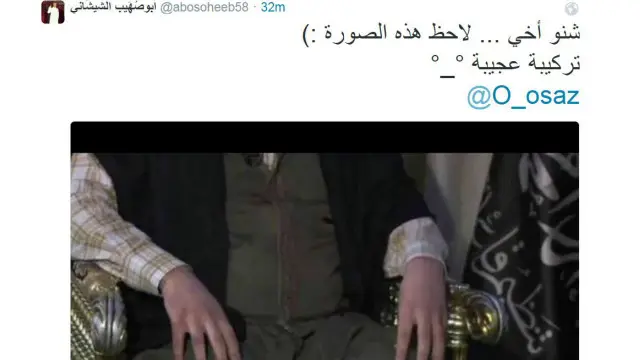 ولفت أبو صهيب إلى أن ملابسه وشكل يديه لا توحي بأنه مقاتل أو يقود القاعدة في سوريا.
