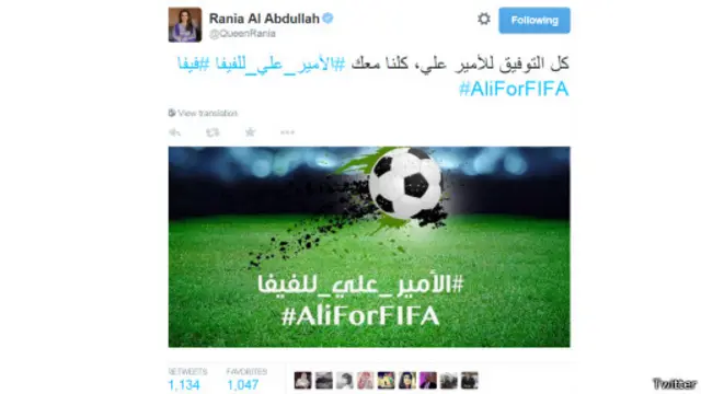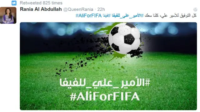 تداول مغردون عرب هذا الهاشتاغ، بمناسبة انتخابات رئاسة الاتحاد الدولي لكرة القدم (فيفا) والتي تجري اليوم الجمعة، ويخوضها الأمير الأردني على بن الحسين.