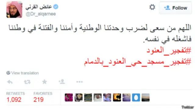 ما إن تأكد خبر وقوع تفجير بالقرب من مسجد للشيعة بالمنطقة الشرقية، حتى ضجت مواقع التواصل الاجتماعي بمئات التعليقات المنددة بالهجوم.