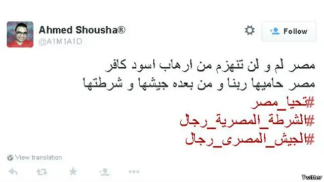 ورأى المغرد أحمد أن التفجير الذي وقع هدفه "توجيه ضربة جديدة موجعة" للرئيس عبدالفتاح السيسي مع بدء عامه الثاني من حكم مصر.