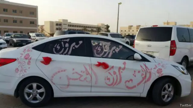 وتداول مغردون صورا أشاروا إلى أنها لمواطن قام بمفاجأة زوجته وذلك بعد تخرجها، مدونا عبارة "ألف مبروك التخرج" مرفقة بورود قماشية حمراء، لصقها على زجاج سيارته.