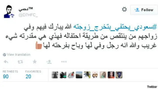 عبر مستخدمو موقع تويتر عن إعجابهم برجل سعودي احتفل علنا بتخرج زوجته، مستخدمين هاشتاغ #سعودي_يحتفي_بتخرج_زوجته.