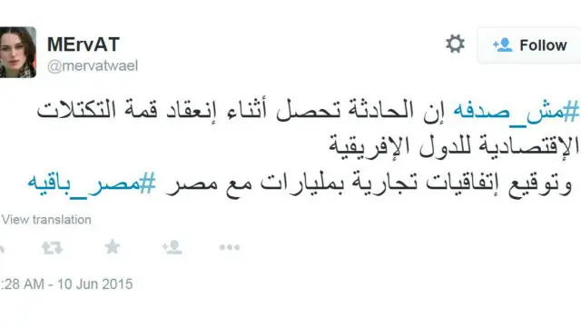 وربط نشطاء بين الهجوم "الإرهابي" الذي وقع بالقرب من معبد الكرنك وبين المؤتمر، ورأت ميرفت أنه لم يكن مصادفة بل جاء بتخطيط للتغطية على نتائج هذا المؤتمر الهام في مسيرة القارة.