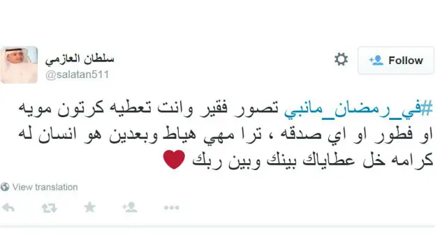 وحذر مستخدمون من التباهي والتفاخر بفعل الخير في رمضان على مواقع التواصل الاجتماعي، وتصوير البعض لأنفسهم وهم يمنحون الآخرين ماء أو طعام.