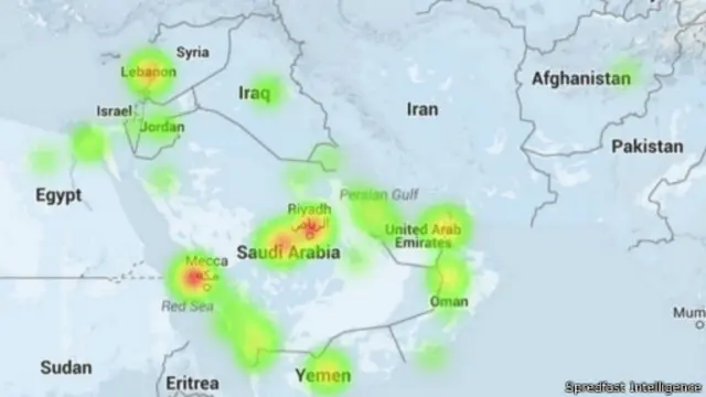 وتبين الخريطة التالية تفاعل مستخدمي تويتر مع #مؤتمر_جنيف و #حوار_جنيف