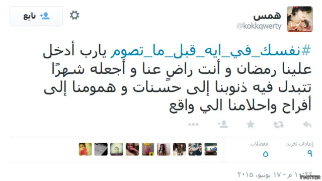 أطلق مغردون على موقع تويتر في مصر هاشتاغ #نفسك_في_ايه_قبل_ما_تصوم، دعوا فيه المستخدمين إلى تبادل الأمنيات قبل ساعات من بداية أول يوم من شهر رمضان.
