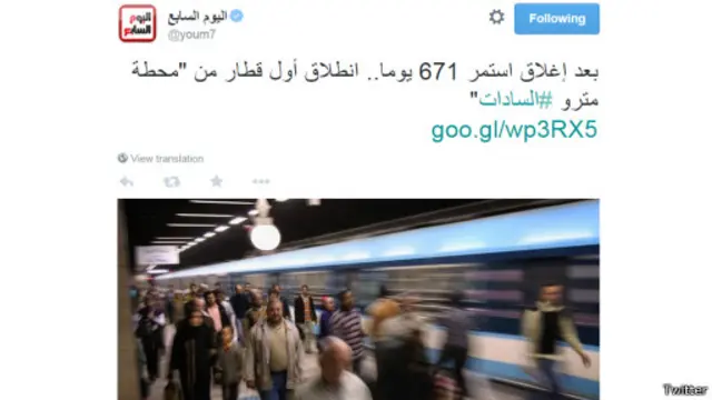 اهتم مستخدمو مواقع التواصل في مصر بإعادة فتح محطة أنفاق "السادات" بالقرب من ميدان التحرير، بعد ان اغلقت لأكثر من عامين وسط إجراءات أمنية مشددة.