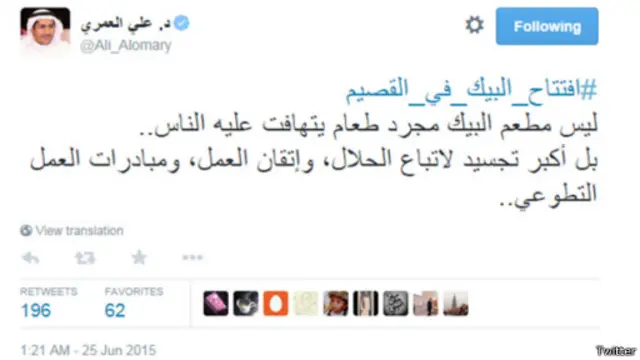 وللتعليق عن الموضوع ، أطلق مغردون مجموعة هاشتاغات أبرزها #افتتاح_البيك_في_القصيم،#إغلاق_مطعم_البيك، ليصل بذلك عدد التغريدات إلى أكثر من 80 ألف تغريدة.