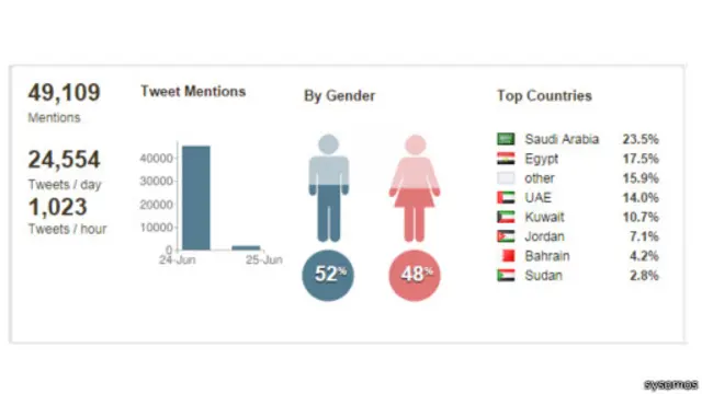 اهتمامات مستخدمي مواقع التواصل الاجتماعي العرب تنوعت بين السياسية والاجتماعية، أبرزها دخول تنظيم الدولة الاسلامية لمدينة كوباني، وافتتاح مطعم "البيك" في مدينة القصيم السعودية، ومغردون مصريون يدعون لمقاطعة شركات الاتصال. كما أولى مغردون اهتماما بالغا بالبرنامج الترفيهي "رامز واكل الجوء".