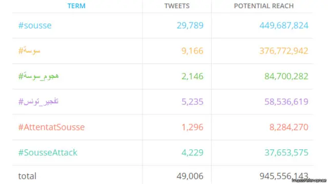 ويظهر الرسم التوضيحي التالي الهاشتاغات التي تناولت الهجوم، وبجانبها عدد التغريدات التي وردت على كل منها.