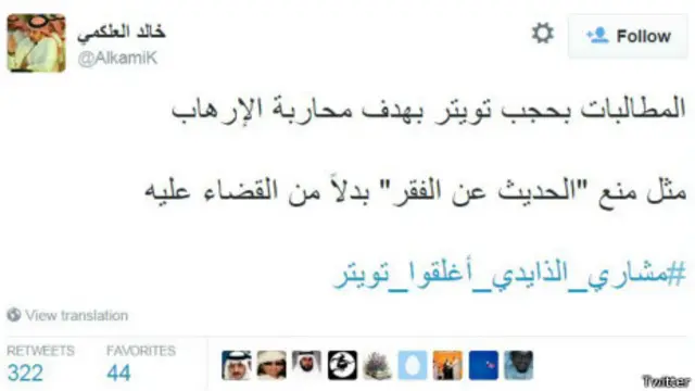 وأوصى الذايدي في مقال عنوانه "امنعوا تويتر من هذا" بحجب تويتر قائلاً: "من أجل تحجيم داعش ومنع ماسورة التجنيد والتحشيد، المطلوب، حالياً، فقط إقفال هذه الماسورة التي اسمها: تويتر".