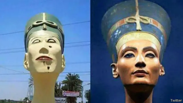 أثار تمثال نُحت حديثا للملكة الفرعونية نفرتيتي استياء مستخدمي تويتر الذين صنفوه بالـ "مشوه" واعتبروه محاولة رديئة لمحاكاة التمثال الأصلي.
