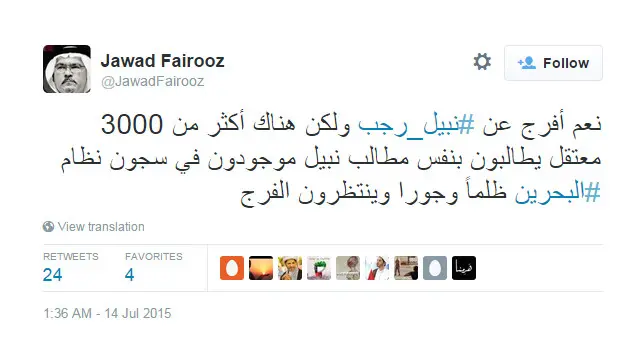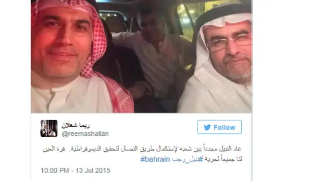 تفاعل مغردون في البحرين مع هاشتاغ #نبيل_رجب عقب صدور عفو ملكي بحق الناشط السياسي البحريني نبيل رجب من قبل ملك البحرين لأسباب صحية.