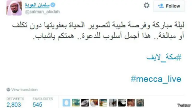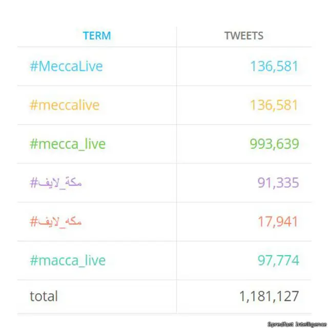 دشن مستخدمو تويتر في السعودية عددا من الهاشتاغات بعنوان "مكة لايف" تزامناً مع بثٍ حي نظمه تطبيق "سناب تشات" لتغطية الصلاة التي تقام في الحرم المكي في ليلة القدر، والتي يُعتقد أنها توافق 27 من شهر رمضان.