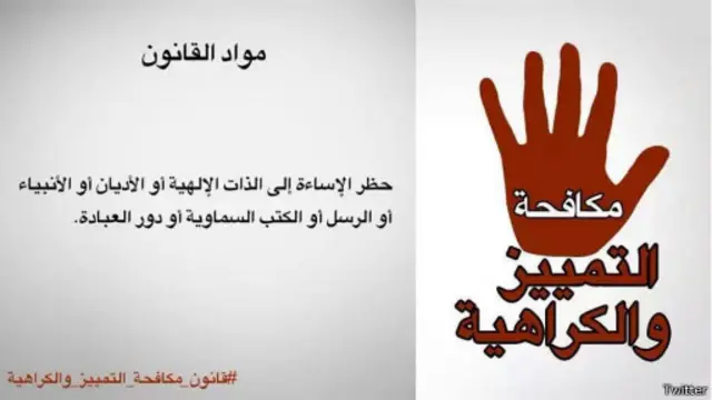 حظي القانون بإشادة البعض، ممن رأوا فيه حصانة من العنصرية والطائفية، خاصة في ظل الصراعات التي تمر بها المنطقة، فيما أعرب آخرون عن تخوفهم من أن يكون هذا القانون غطاء للتضييق على الحريات.