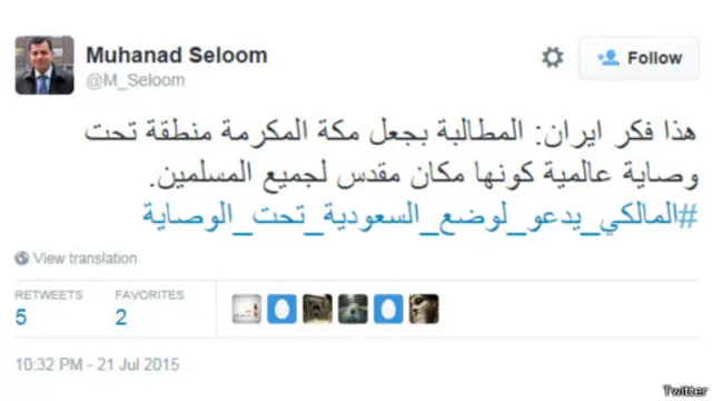 فغرد خالد بدر قائلا : " نوري المالكي كلامه صح وواجب طرحه بأسرع وقت وهو وضع السعوديه(تحت الوصاية الدولية)هذا كلام الملوك."