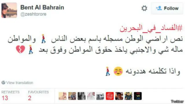 وظهر هاشتاغ #الفساد_في_البحرين في أكثر من 1500 تغريدة.