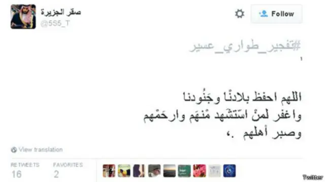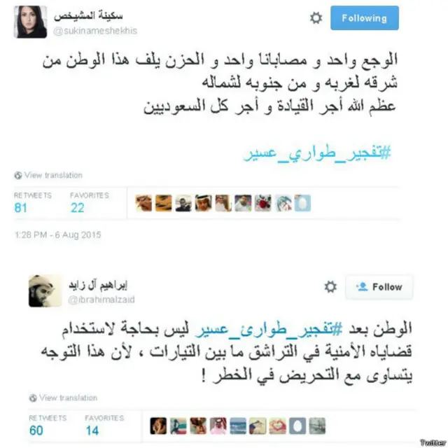 ما أن تـأكد خبر تفجير مسجد لقوات الطوارئ السعودية في مدينة أبها بمنطقة عسير، حتى سارع رواد مواقع التواصل الاجتماعي إلى التنديد بالهجوم واصفين إياه بـ " الإرهابي".