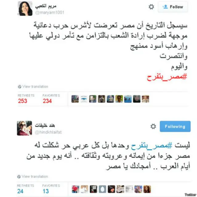 وشارك مغردون عرب المصريين فرحتهم بالقناة الجديدة واصفين إياها بـ " الإنجاز التاريخي" ليصل بذلك عدد التغريدات عبر هاشتاغ "مصر بتفرح" إلى أكثر من 100 ألف تغريدة خلال 24 ساعة الماضية.