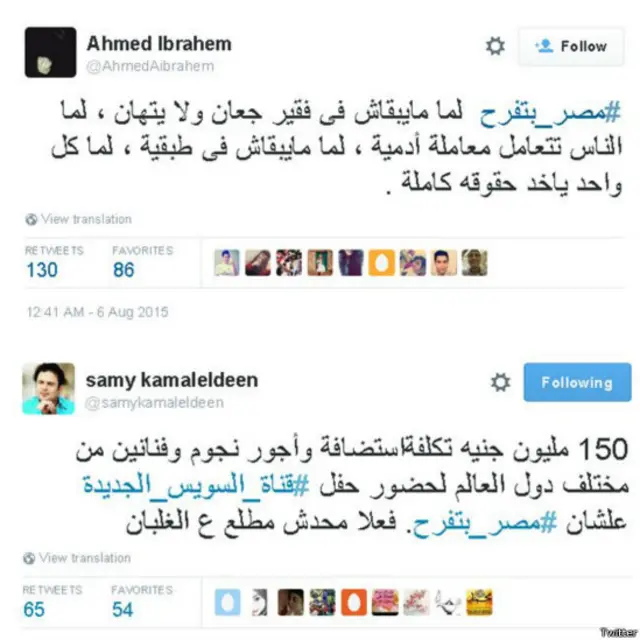 وعبر هاشتاغ "مصر بتصرخ"، وجه مغردون انتقادات إلى الحكومة بسبب ما وصفوه بالبذخ الذي صاحب حفل الافتتاح، في وقت تعيش فيه فئة كبيرة من المجتمع أوضاعا اقتصادية صعبة، على حد تعبيرهم.