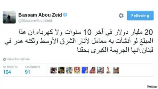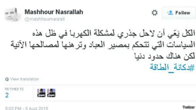 أثارت تصريحات وزير الطاقة اللبناني، أرتور نظاريان، ردود فعل غاضبة في أوساط رواد مواقع التواصل الاجتماعي الذين طالبوا الحكومة بإيجاد حلول جذرية لأزمة الكهرباء التي تشهدها البلاد منذ سنوات.