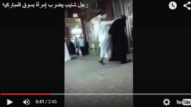 تداول مغردون في الكويت مقطع فيديو انتشر على يوتيوب وتويتر، يظهر فيه رجل يضرب امرأة منتقبة بعنف في سوق المباركية بالعاصمة.