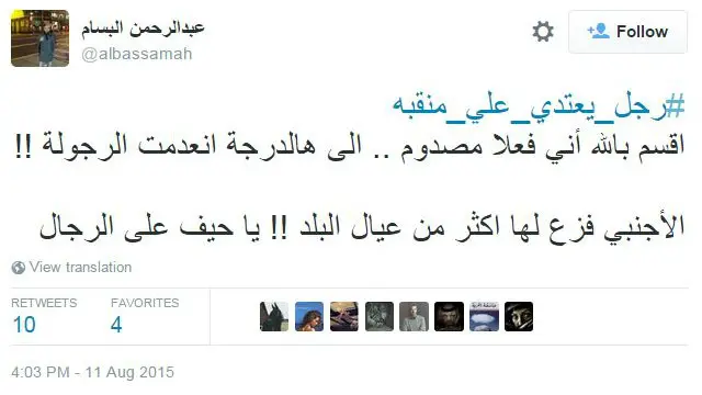 وبلغ عدد التغريدات التي ظهر فيها هاشتاغ #رجل_يعتدي_علي_منقبة 15 ألف تغريدة، وشُوهد مقطع الفيديو الذي تم تحميله على يوتيوب يوم الثلاثاء 11 أغسطس/آب أكثر من 42 ألف مرة.