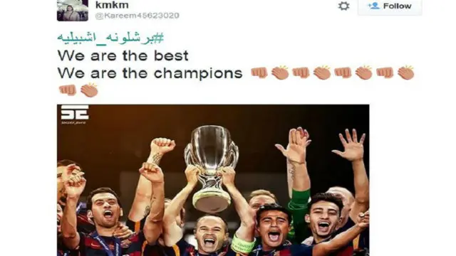 وأطلق مغردون هاشتاغ #برشلونه_اشبيليه الذي ظهر في أكثر من 49 ألف تغريدة والذي تابعوا باستخدامه مجريات المباراة، وبعد تحقيق برشلونة الفوز انهالت التغريدات التي تحمل التهاني للفريق على أدائه خلال المباراة.