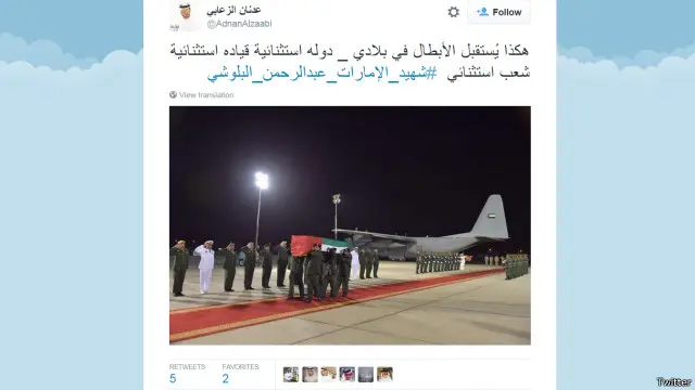 وظهر هاشتاغ #شهيد_الإمارات_عبدالرحمن_البلوشي بين المغردين.