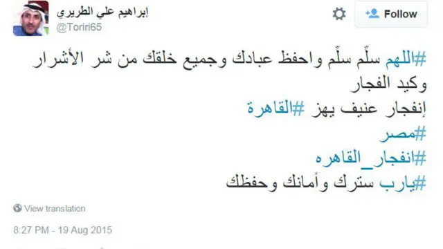 وأثار الانفجار ردود أفعال عربية أيضا، وتفاعل مغردون خليجيون مع التقارير التي وردت من القاهرة.