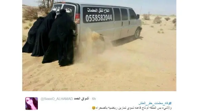 وتداول مستخدمون صورا توضح معاناة المعلمات في السعودية للوصول إلى أماكن عملهن خاصة في المناطق البعيدة عن المدن.