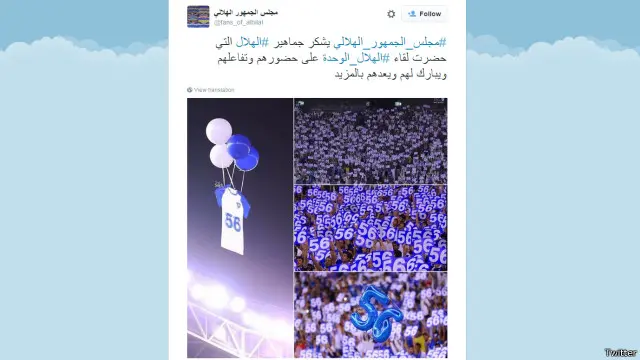 ورفعت جماهير الهلال لوحات عليها رقم 56، وهو عدد البطولات التي فاز بها الفريق، خلال مسيرته الرياضية.